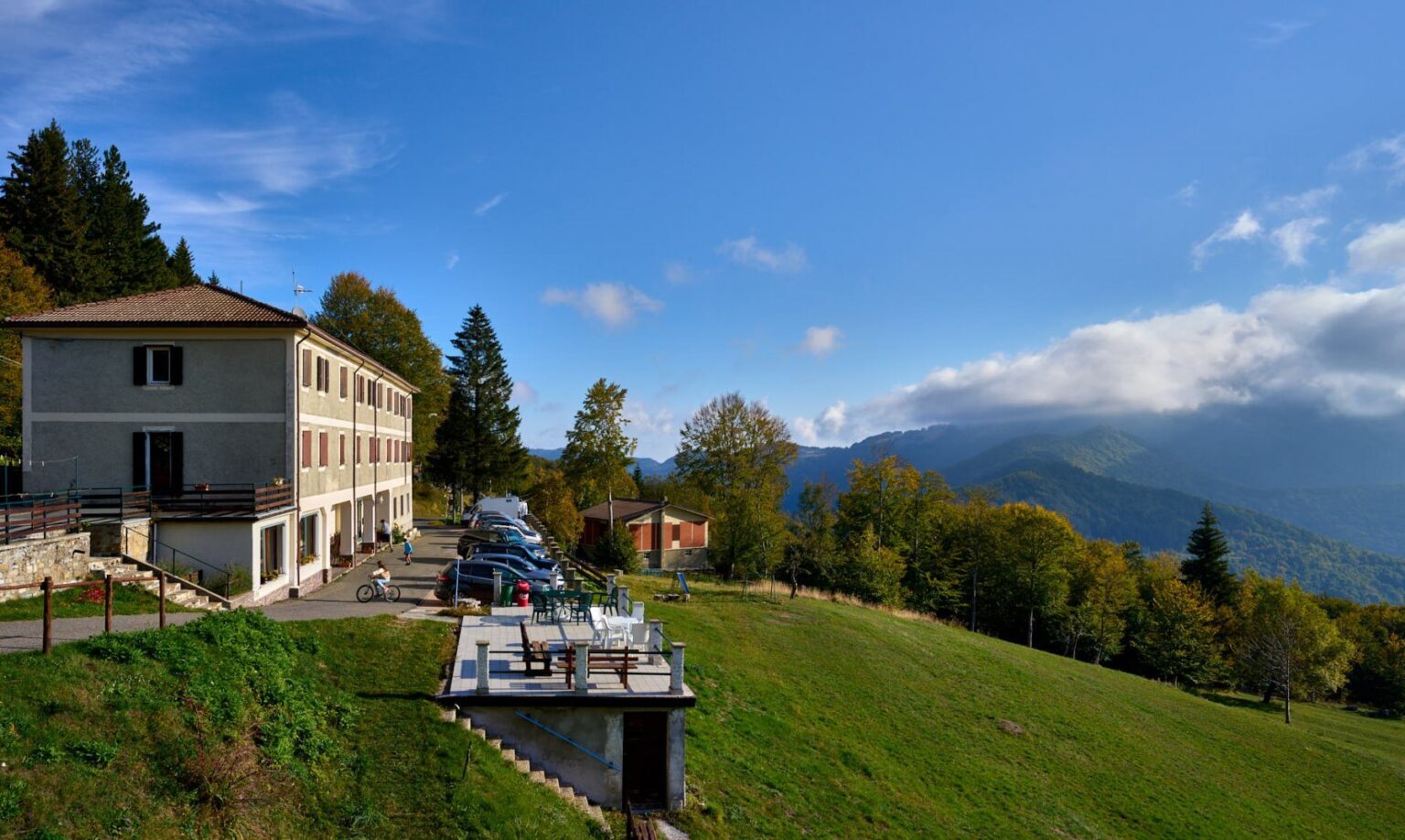 La struttura originaria è del 1904, ma una profonda ristrutturazione nel 1939 gli ha conferito l’aspetto odierno. Nel corso degli anni continue opere di miglioramento hanno permesso di rendere la struttura moderna ed efficiente per le esigenze di oggi, senza perdere la qualità e il fascino dell’accoglienza di un tempo: direttamente dai prati si accede alla grande terrazza con il portico che nella bella stagione è lo spazio ideale per uno spuntino ,una bevanda o una partita a carte.